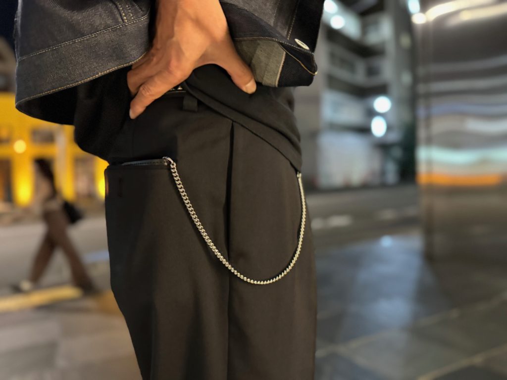 近年、ウォレットチェーンを使ったアメカジやルードなスタイルが人気。