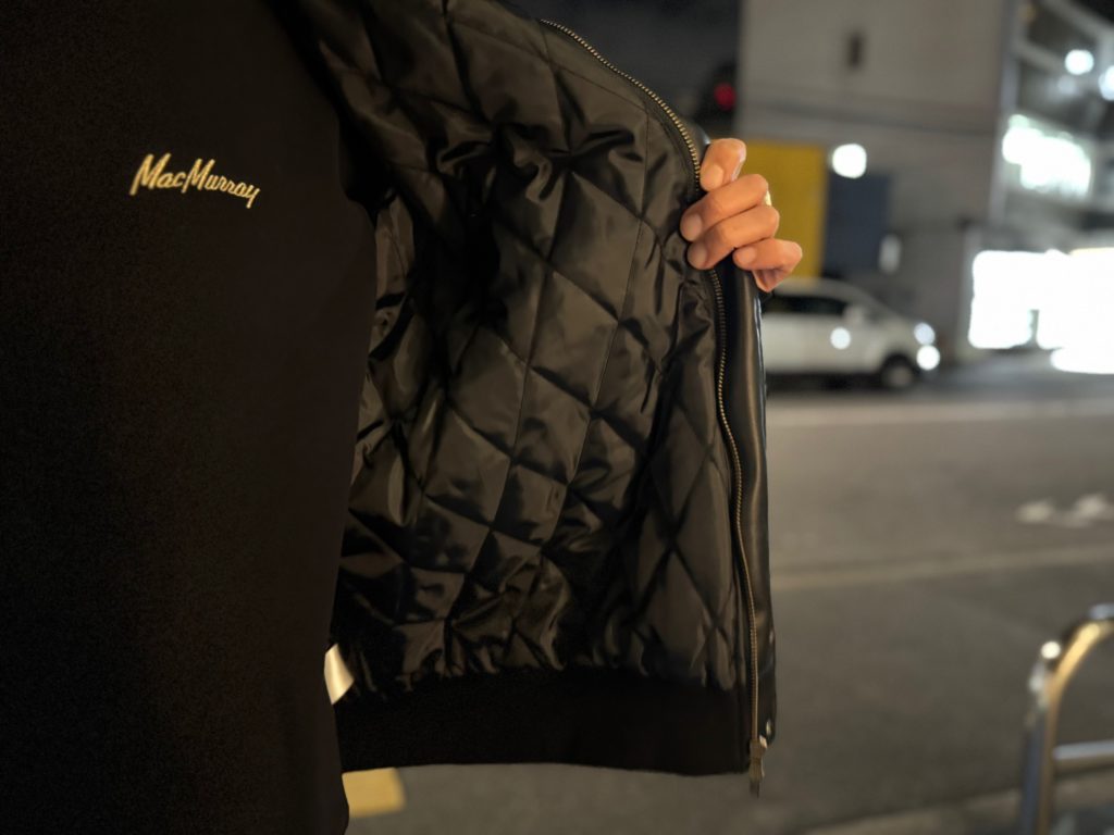 裏地には中綿が入ったキルティング生地が付いているので保温性もあり、これから冬にかけてのアウターになりそうです。